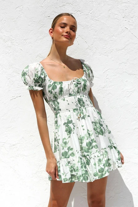 - green floral mini dress