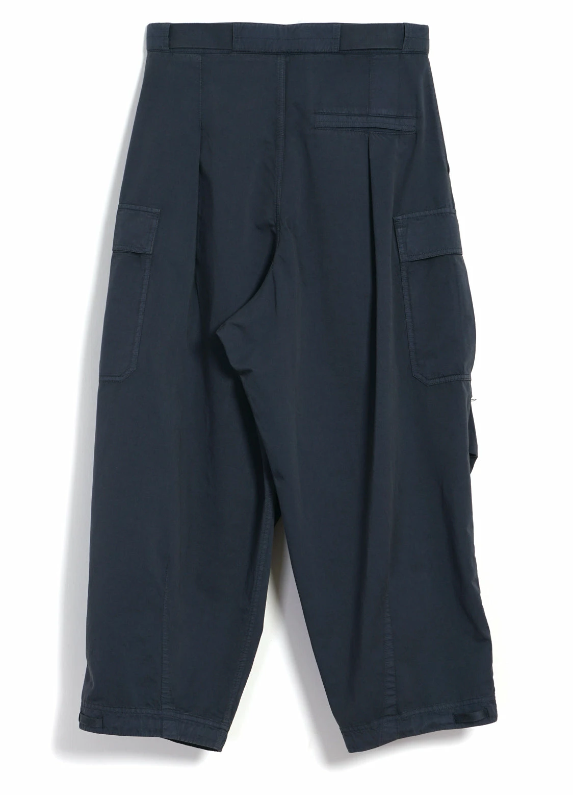 BENNY is a super wide cut pair of trousers. Inspired by vintage military snow over trousers. To create the volume BENNY is featuring large darts at waist, bottom hem and knees. It comes with large side pockets, a back pocket, a heavy cotton ribbon belt and ribbon drawstrings at the bottom hem.