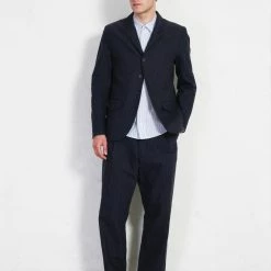 This solid heavy weight Italian canvas has a very visible structure due to the thick yarns. For a softer touch the garments have been dyed, washed and tumbled.