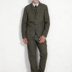 A Portugese cotton with a hounds tooth pattern. The fabric is originally black and white, then over-dyed. This process makes a really relaxed and casual feeling. A subtle yet very stylish look that we treasure very highly at HANSEN Garments.