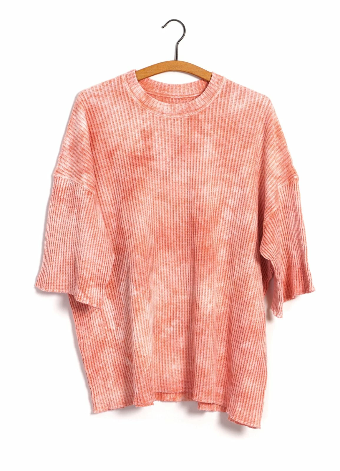 Enzyme and silicon washed crewneck t-shirt made of thermal cotton. Extra soft and breathable due to the light ‘waffle-like’ fabric.