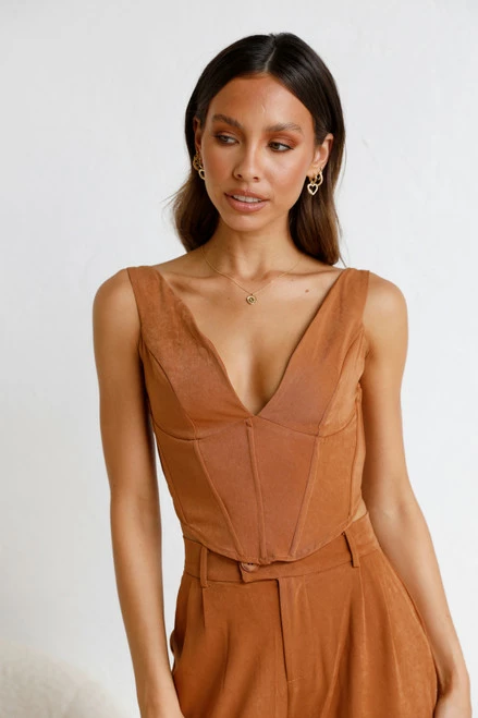 - tan bustier crop top