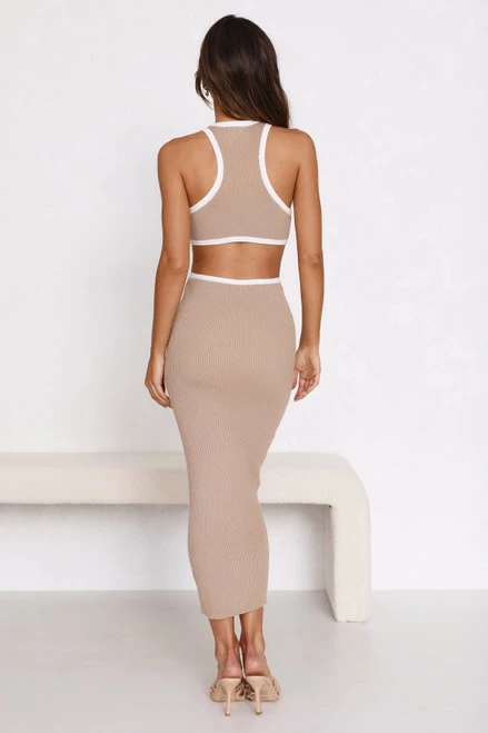 - camel midi knit dress