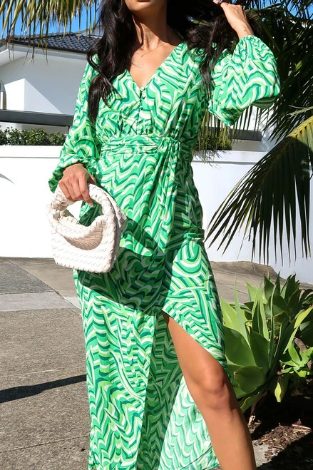 - multi green print dress